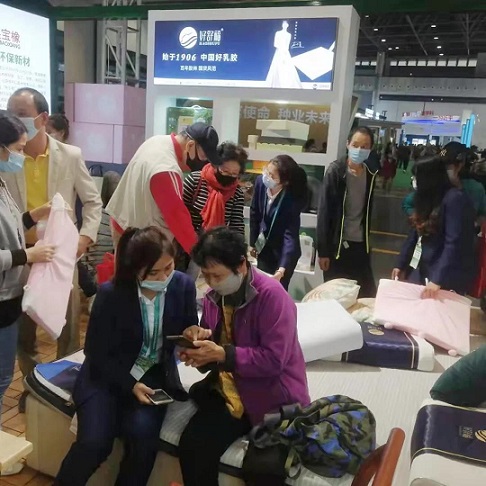 冬交會(huì)期間,好舒福乳膠制品公司共攜10余種乳膠產(chǎn)品到現(xiàn)場(chǎng)參展,不少參展嘉賓紛紛走進(jìn)“好舒福”展位,親身感受天然乳膠寢具帶來的舒適睡眠體驗(yàn)。“此次參展床墊在全國統(tǒng)一價(jià)的基礎(chǔ)上打7折,其余小件低至5折?!焙D舷鹉z展區(qū)“好舒福”展位負(fù)責(zé)人趙鶴楠介紹。