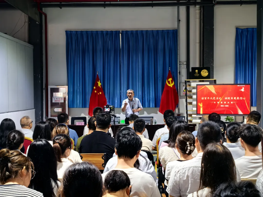 6月20日,海南橡膠黨委書記、董事長王宏向為安徽秦欄鎮(zhèn)愛德福公司乳膠發(fā)泡加工廠生產(chǎn)車間的70余名干部員工講授“讀百年大黨歷史,樹改革發(fā)展信心” 專題黨課。
